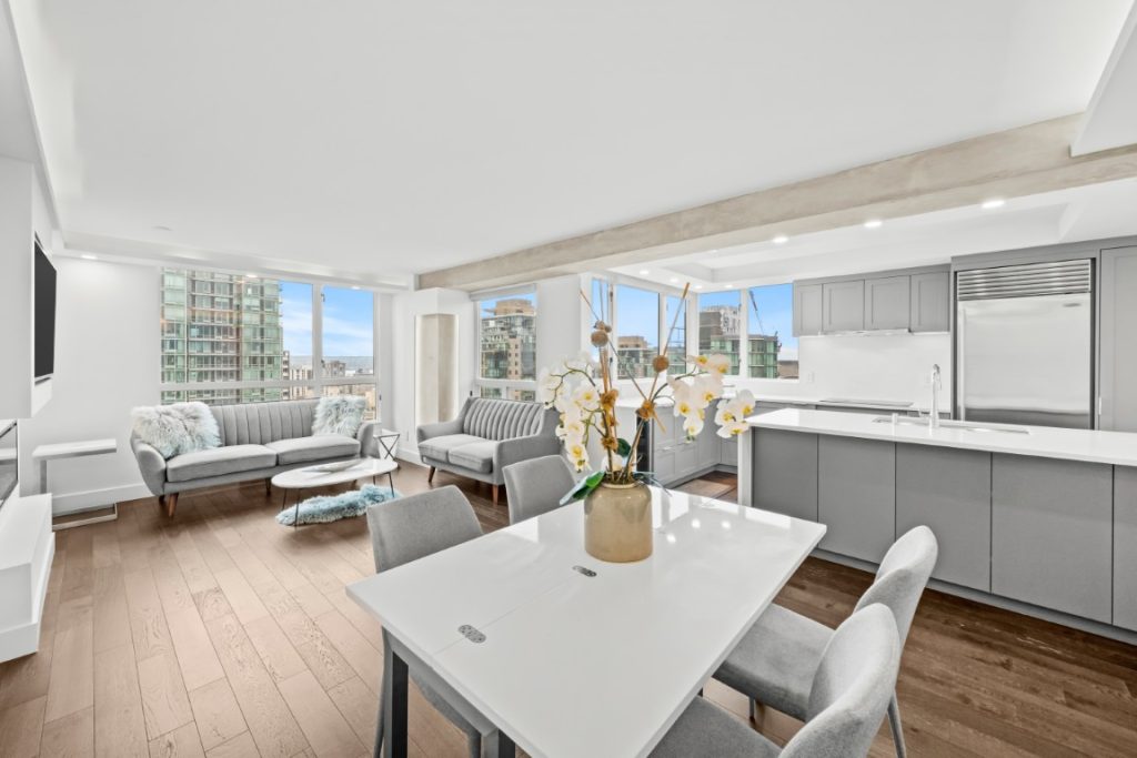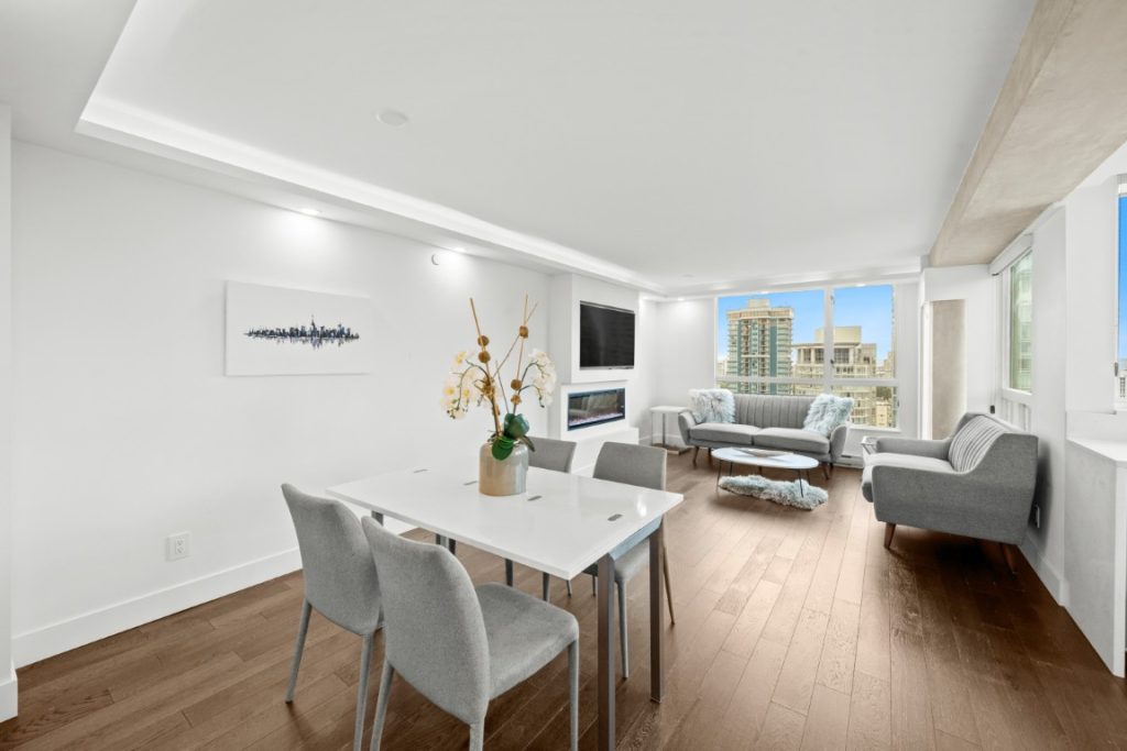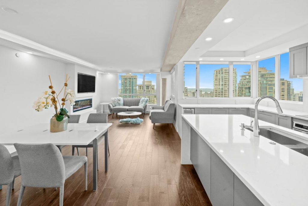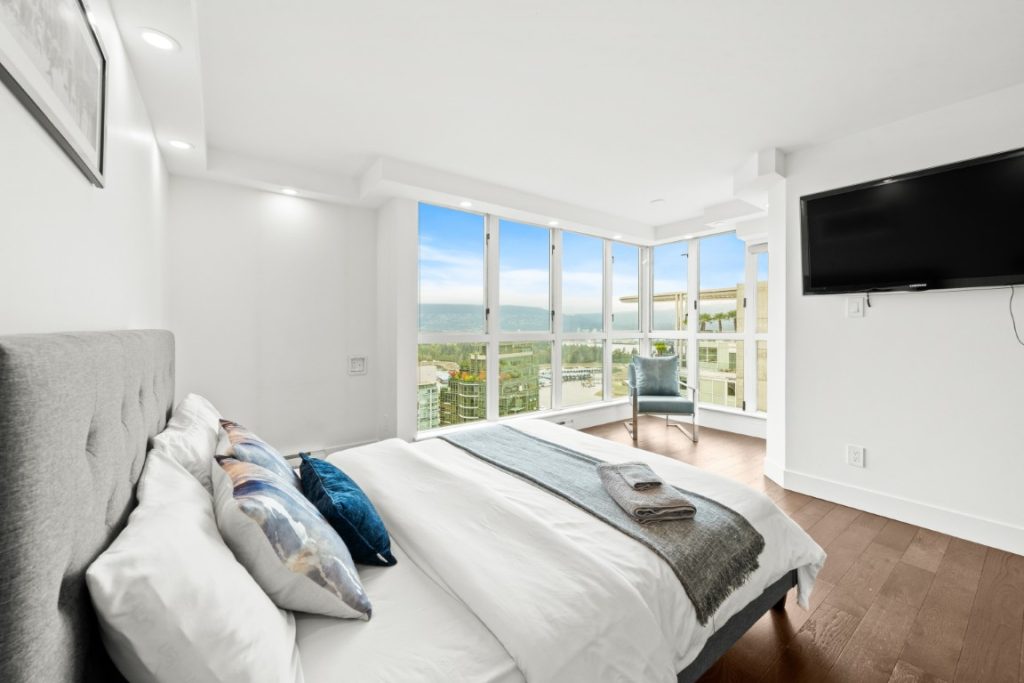 Experience luxury living in this beautifully furnished 3-bedroom corner suite at Pointe Claire, an elegant high-rise in the heart of Coal Harbour. Recently renovated, this contemporary residence boasts a spacious open-concept layout ideal for relaxing, dining, and entertaining. Spanning nearly 1,200 sq. ft., it offers floor-to-ceiling windows framing breathtaking views of the marina, city skyline, and spectacular sunsets. Just steps from the seawall, Stanley Park, and vibrant restaurants and shops. Enjoy 5-star amenities including concierge service, a year-round indoor pool, hot tub, sauna, and more. Schedule your private viewing today!